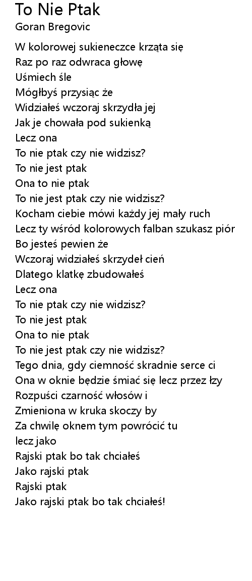 | [03:48.98] | Jako rajski ptak bo tak chciałeś! |
