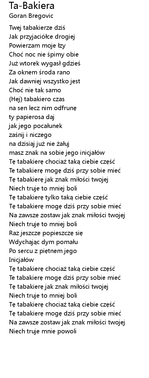 | [01:48.13] | T tabakier jak znak mi o ci twojej |