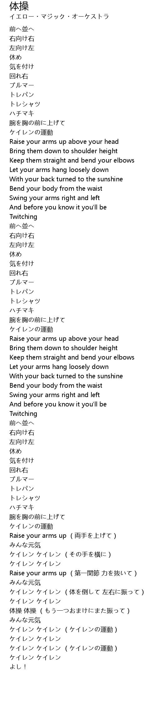 | [04:06.61] | 体操 体操 (もう一つおまけにまた振って) |