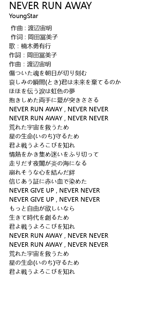| [03:16.700] | NEVER RUN AWAY , NEVER NEVER |