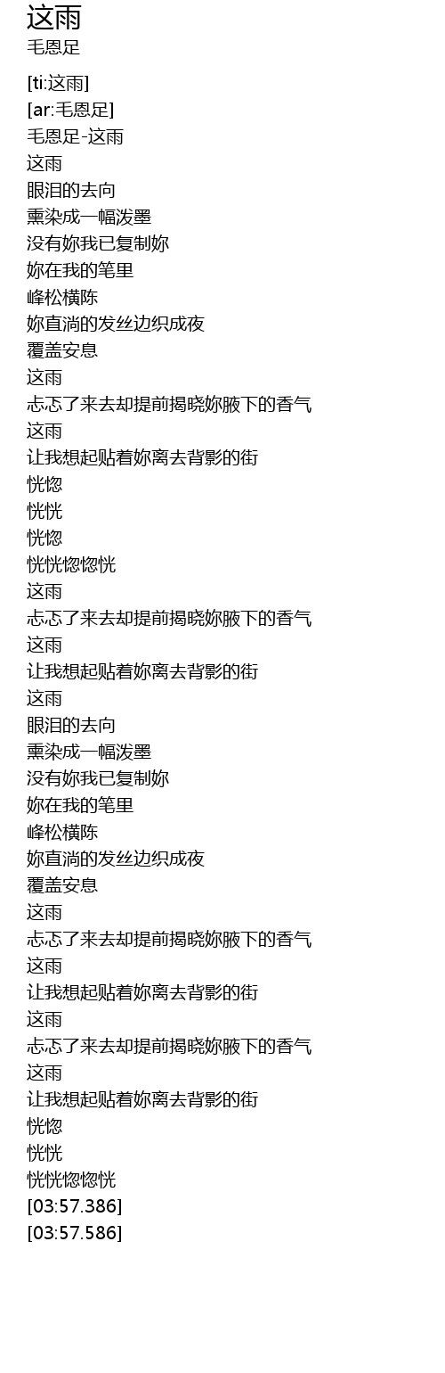 | [00:00.473] | 毛恩足-这雨 |
