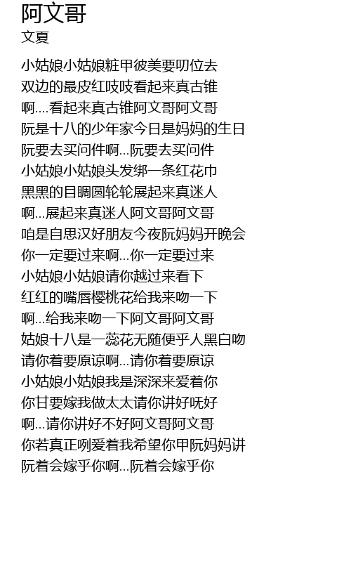 | Song | 阿文哥 |