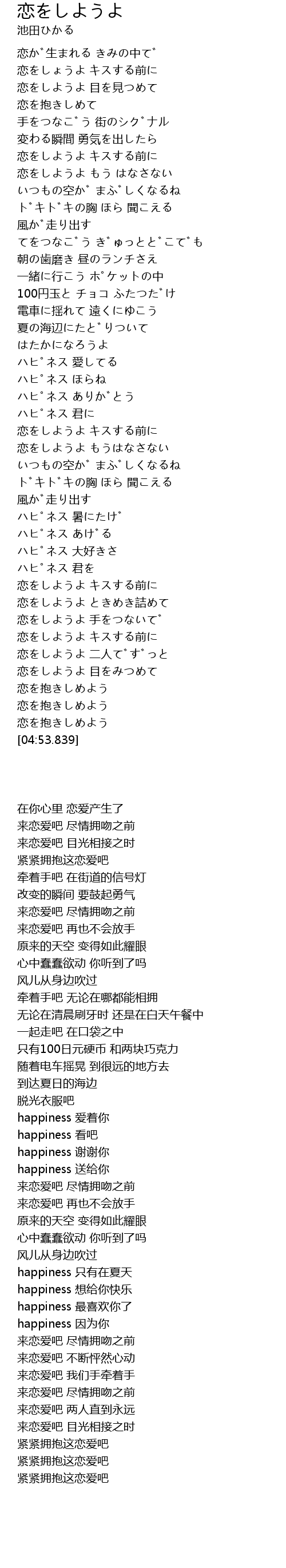 | [03:53.494] | 恋をしようよ キスする前に |
