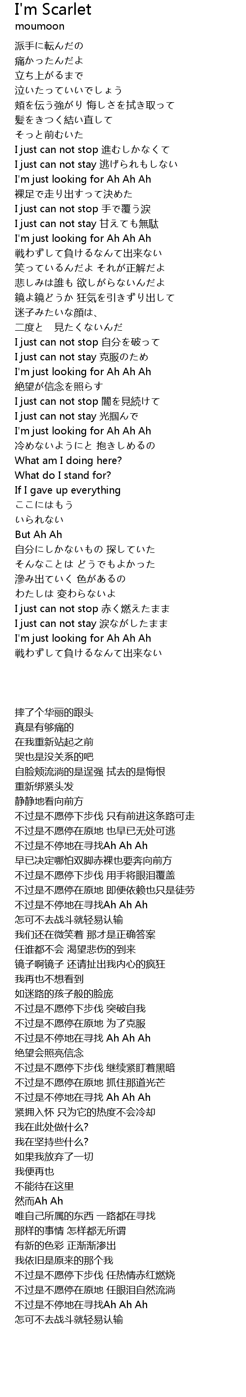 | [02:21.99] | I just can not stop àn jiàn xu |