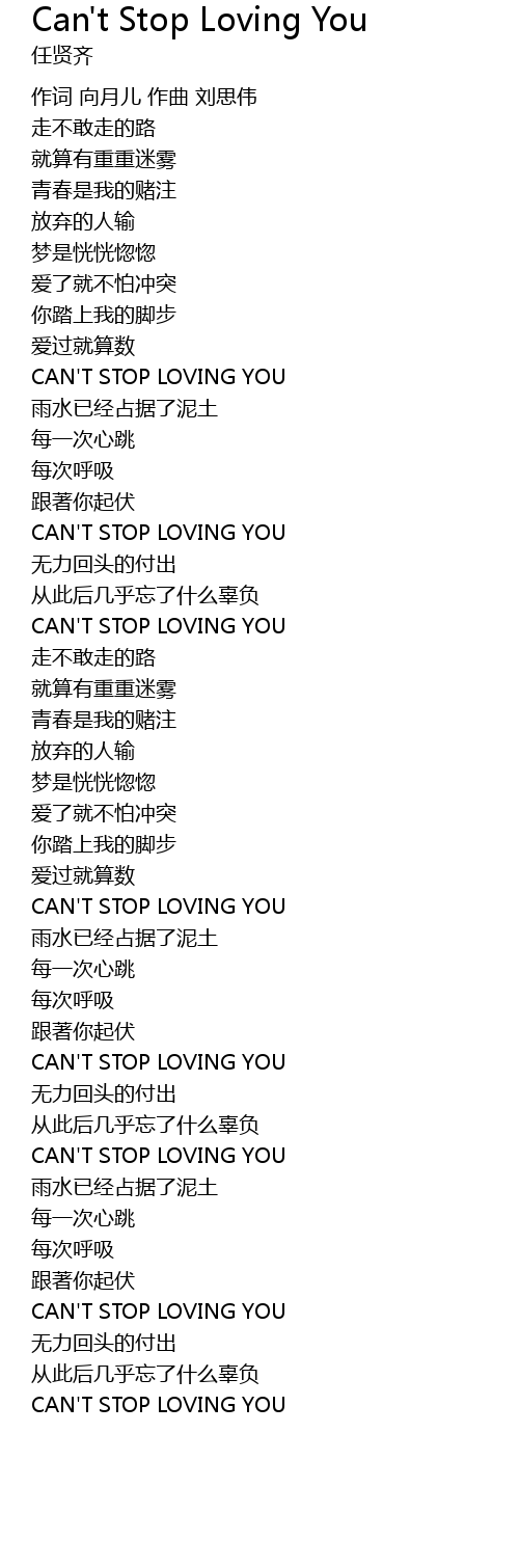 | [00:47.61] | CAN' T STOP LOVING YOU |