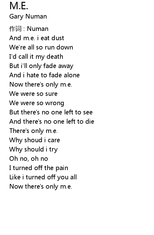 | Now there' s only m. e. | |