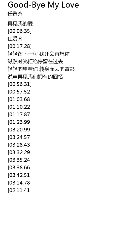 | [04:07.08][03:35.24][03:03.34][01:38.74] | GoodBye My Love |