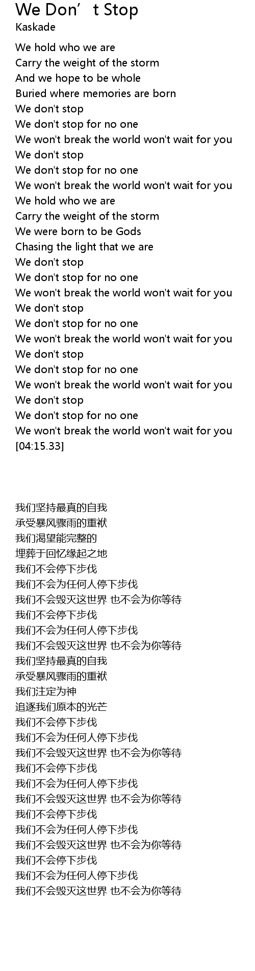 We won't break the world won't wait for you |