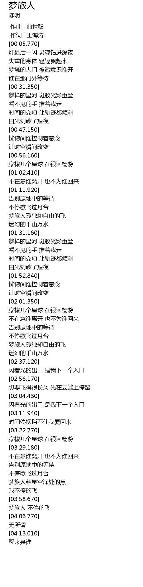 | [03:47.460] | 梦旅人朝星空深处的黑 |