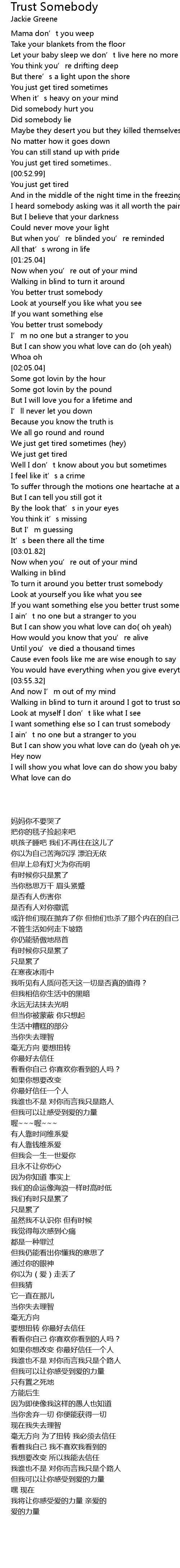 | [03:58.65] | Walking in blind to turn it around I got to trust somebody |