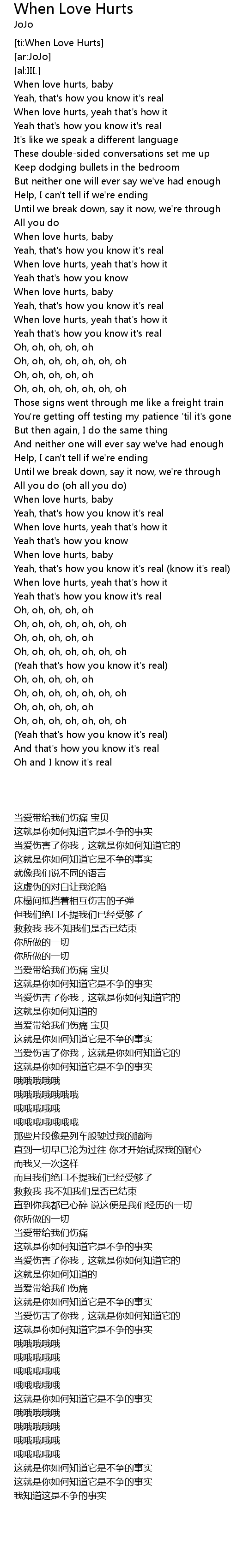| [02:26.98] | When love hurts, baby |