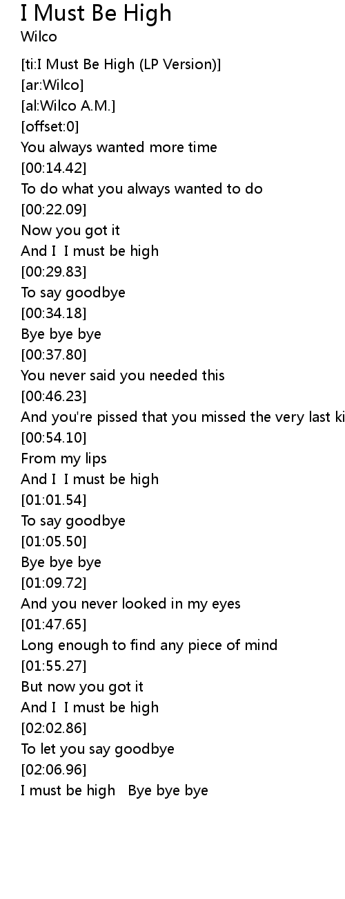 [ti:I Must Be High (LP Version)] |
