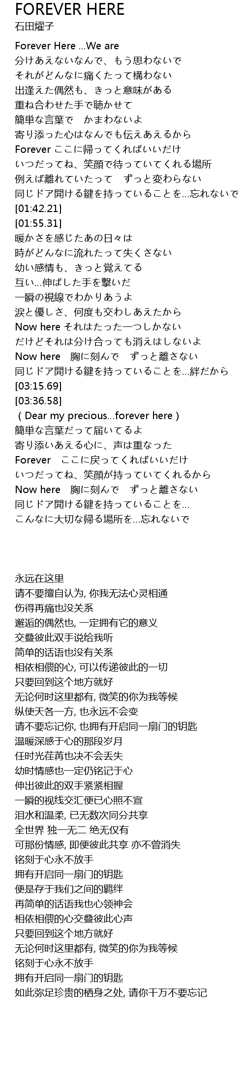 | [00:15.38] | Forever Here ...We are |