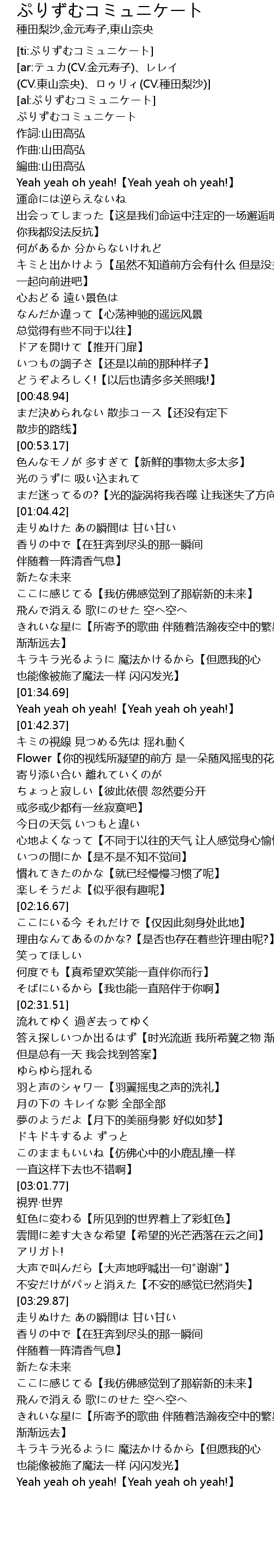 | [01:39.65] | Yeah yeah oh yeah! Yeah yeah oh yeah! |