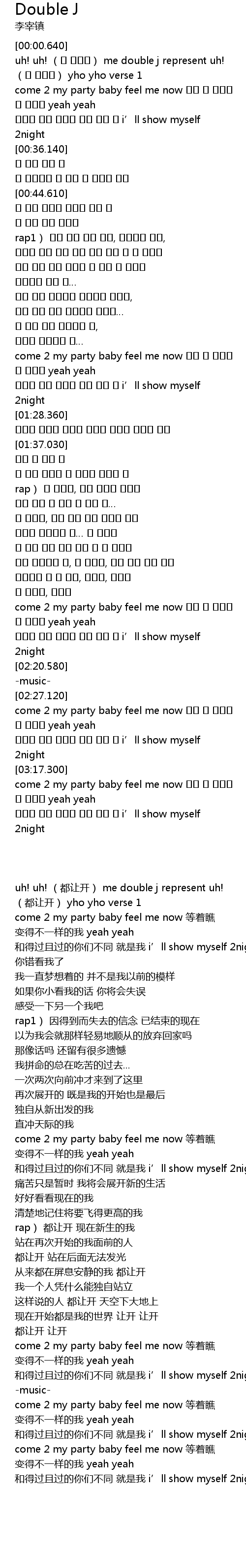 | [03:01.510] | come 2 my party baby feel me now 두고 봐 달라진 |