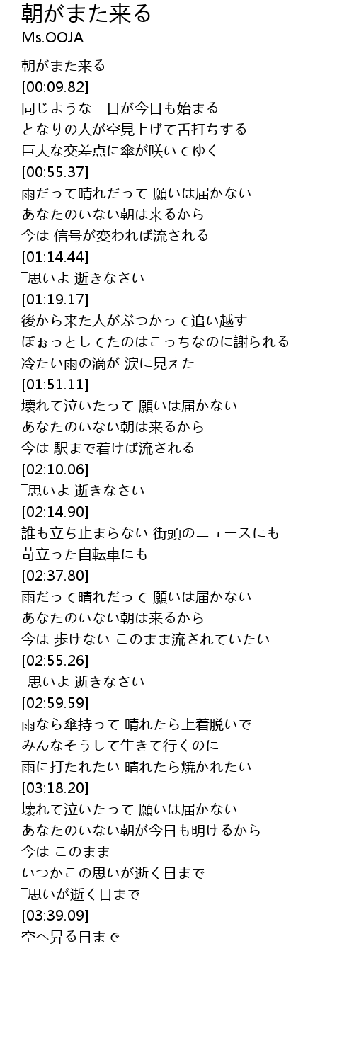 | [03:26.37] | あなたのいない朝が今日も明けるから |