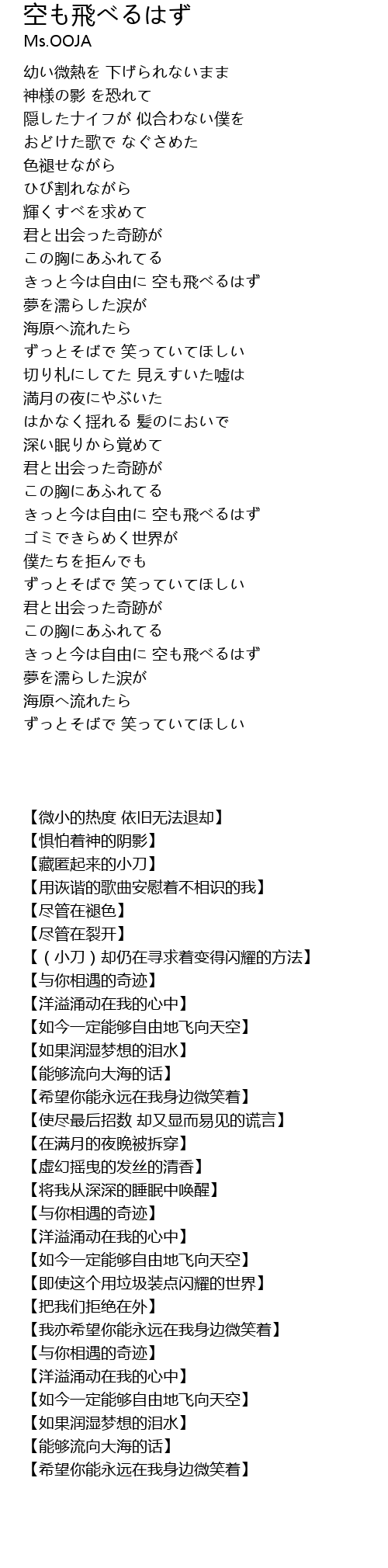 | [03:38.50] | きっと今は自由に 空も飛べるはず |