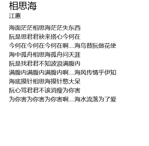 | 海面茫茫相思海茫茫失东西 | |