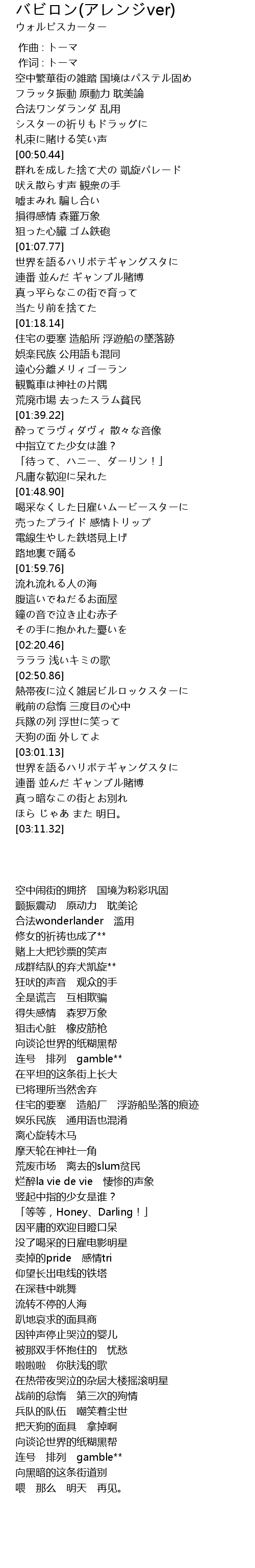 | [03:01.31] | 世界を語るハリボテギャングスタに |