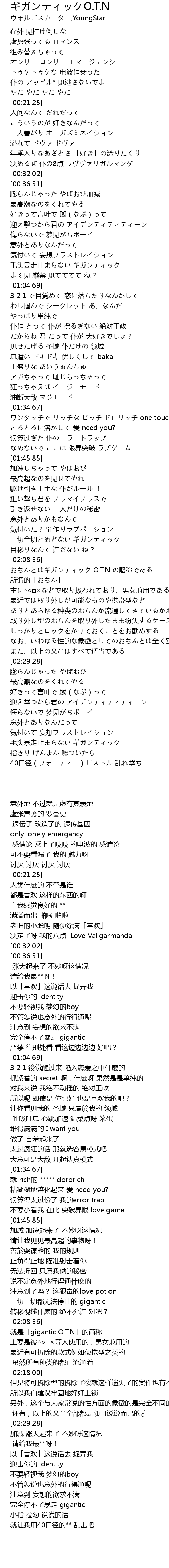 | [02:08.88] | おちんとはギガンティック O.T.N の略称である 所谓的「おちん」 |