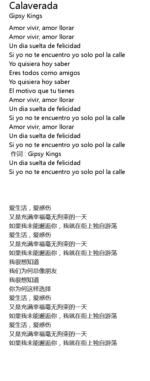 | [00:00.00] | 作词 : Gipsy Kings |