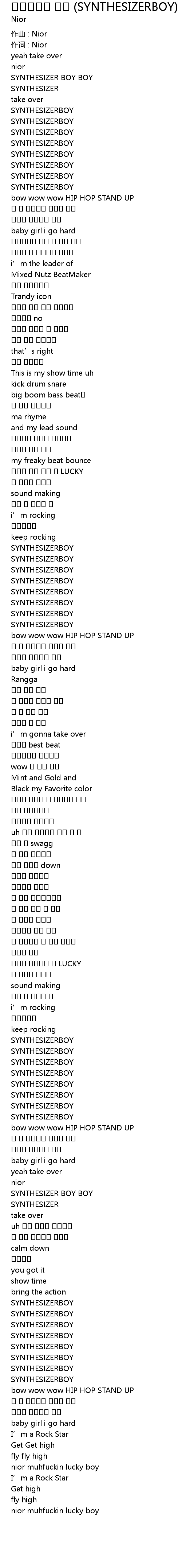 | Song | 신디사이져 보이 (SYNTHESIZERBOY) |