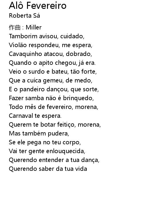 | Song | Alô Fevereiro |