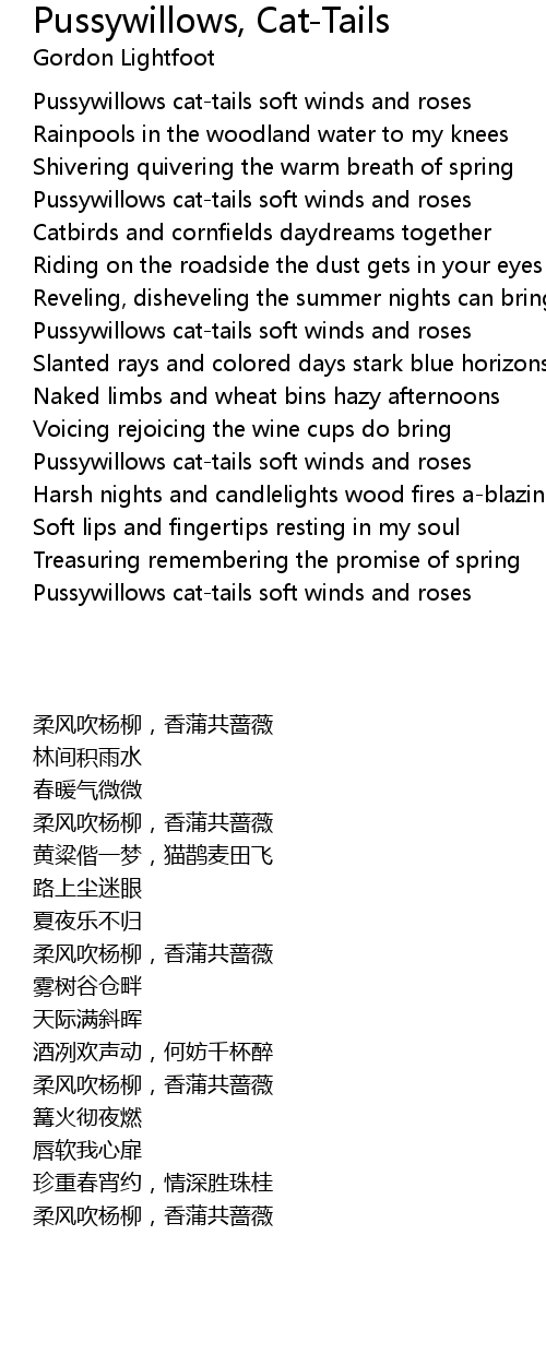 Pussywillows cat-tails soft winds and roses |
