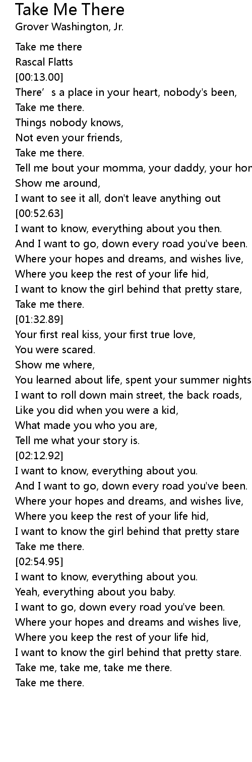 | [00:00.00] | Take me there |