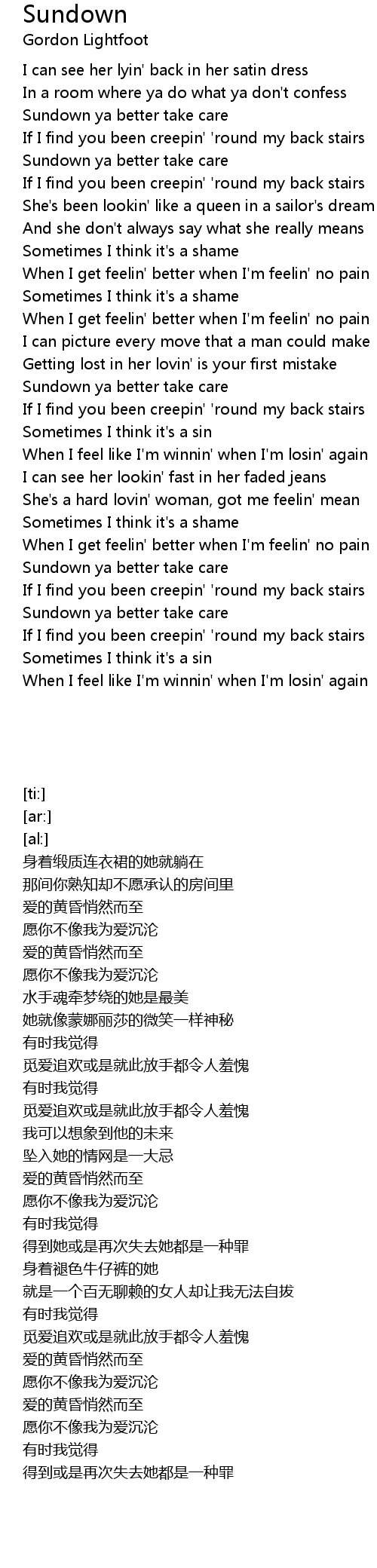 Sundown Lyrics