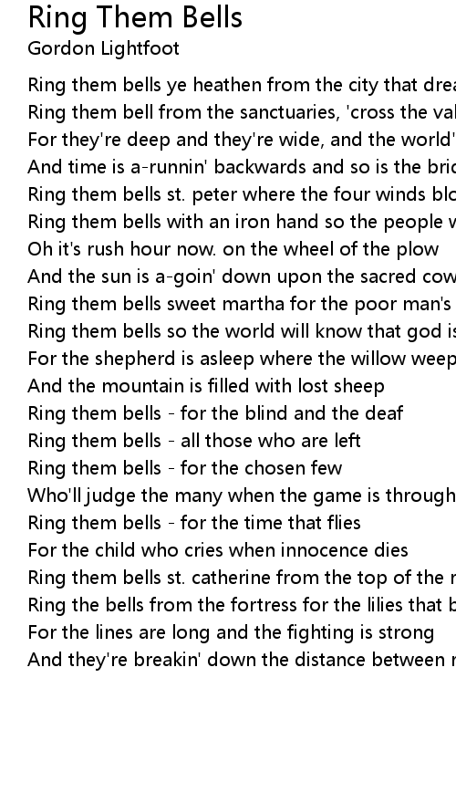Ring them bell from the sanctuaries, 'cross the valleys and streams |