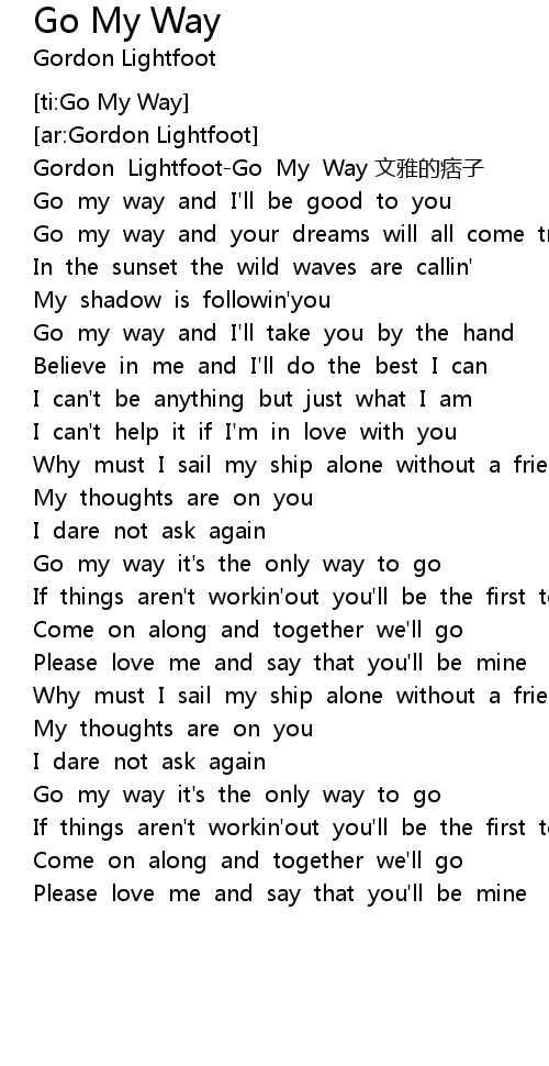 | [00:01.65] | Gordon LightfootGo My Way wen ya de pi zi |