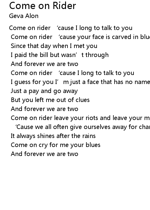 | Come on rider ' cause I long to talk to you | |