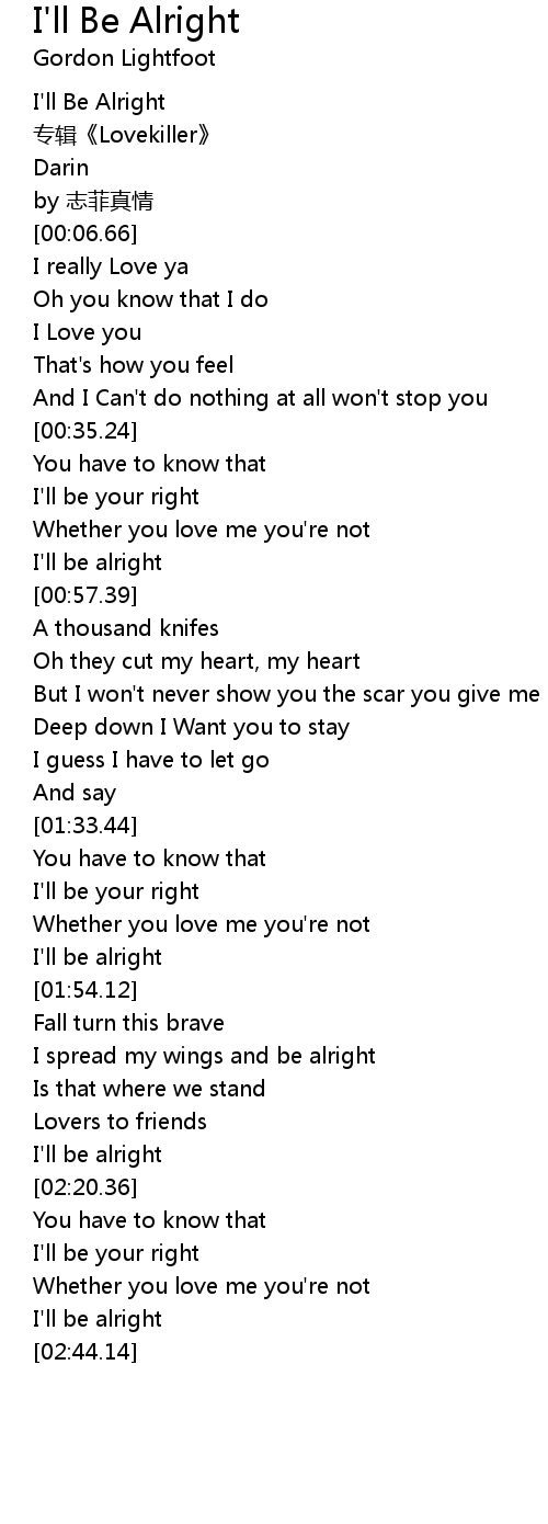 | [00:02.73] | I' ll Be Alright |