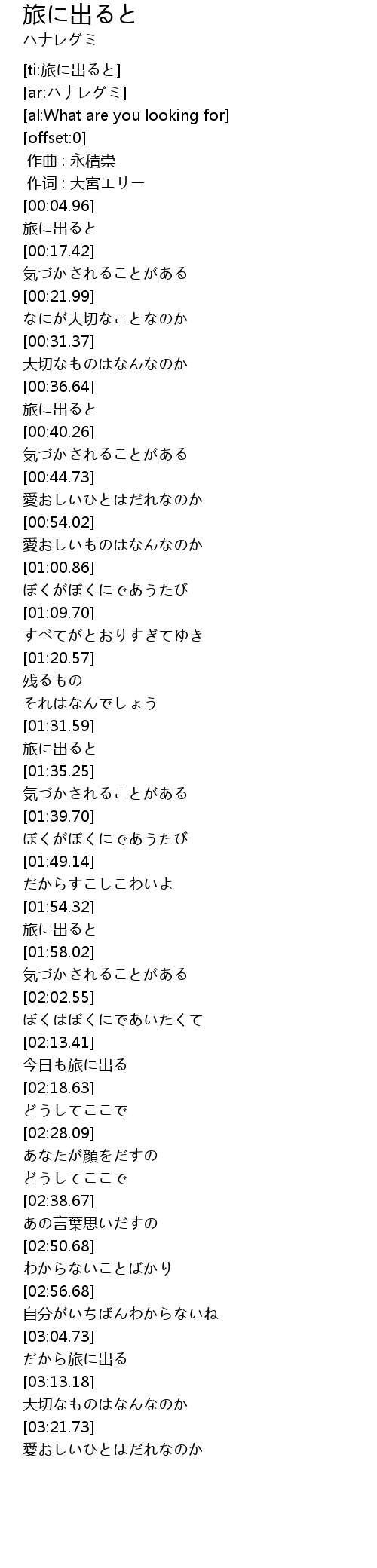 | [03:22.67] | 愛おしいひとはだれなのか |