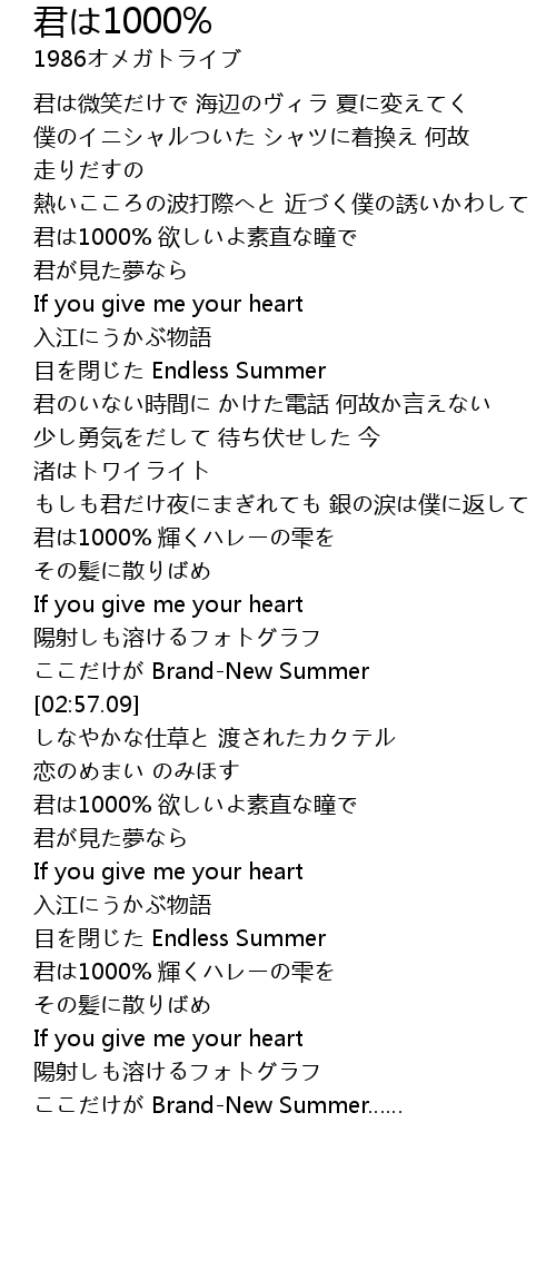 | [03:18.76] | 君は1000% 欲しいよ素直な瞳で |