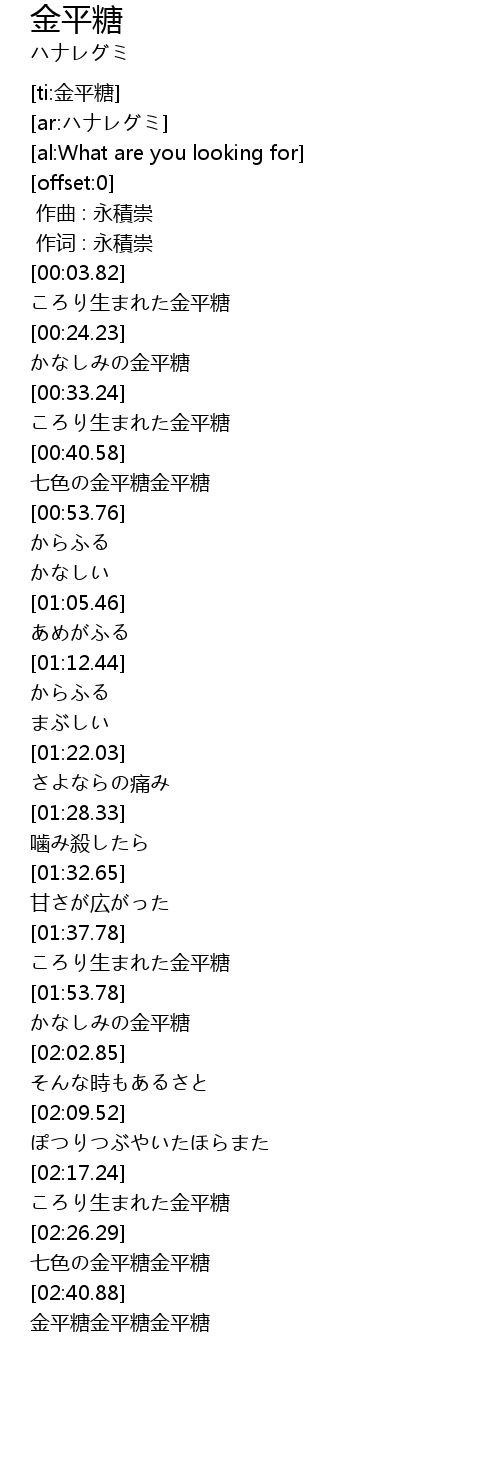 | [02:44.46] | 金平糖金平糖金平糖 |