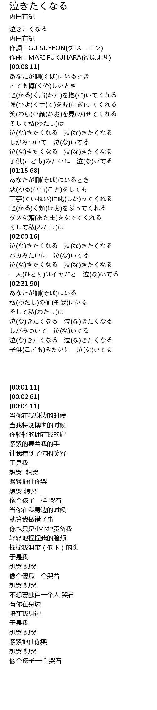 | [00:59.60] | 泣(な)きたくなる 泣(な)きたくなる |