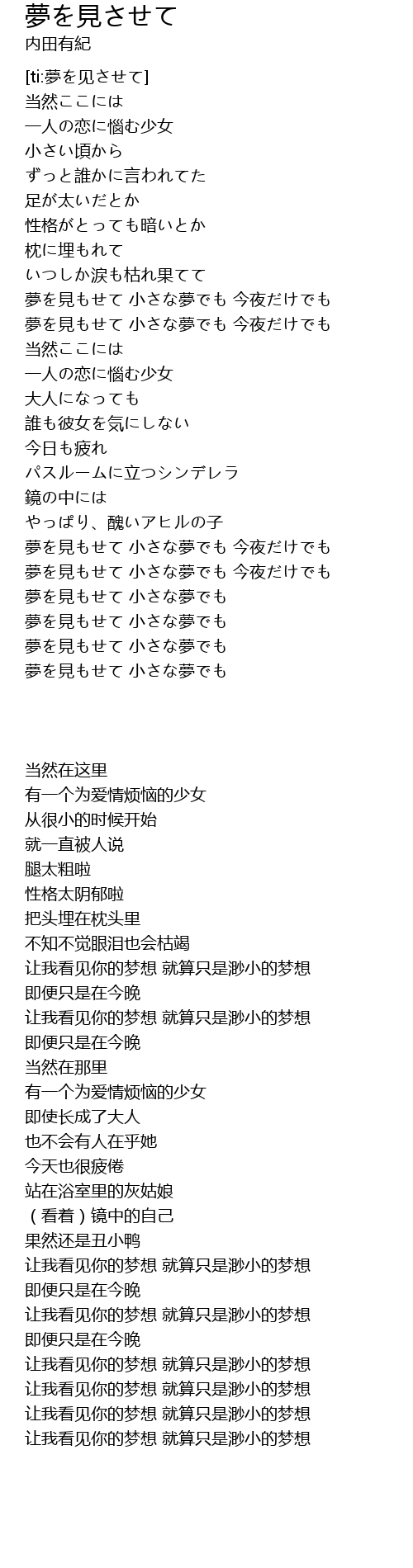 | [03:11.00] | 夢を見もせて 小さな夢でも |