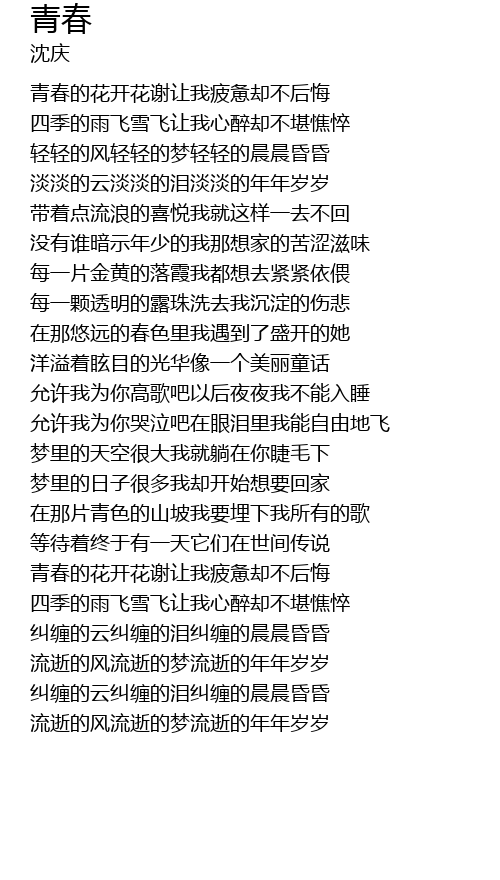 | [03:20.200] | 青春的花开花谢让我疲惫却不后悔 |