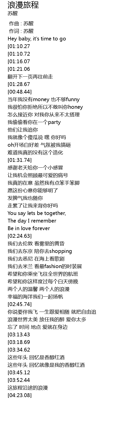 | [00:10.66] | Hey baby, it's time to go |
