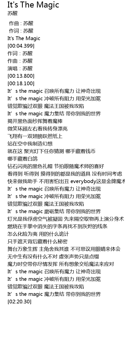 | [00:20.60] | It’s the magic 召唤所有魔力 让神奇出现 |