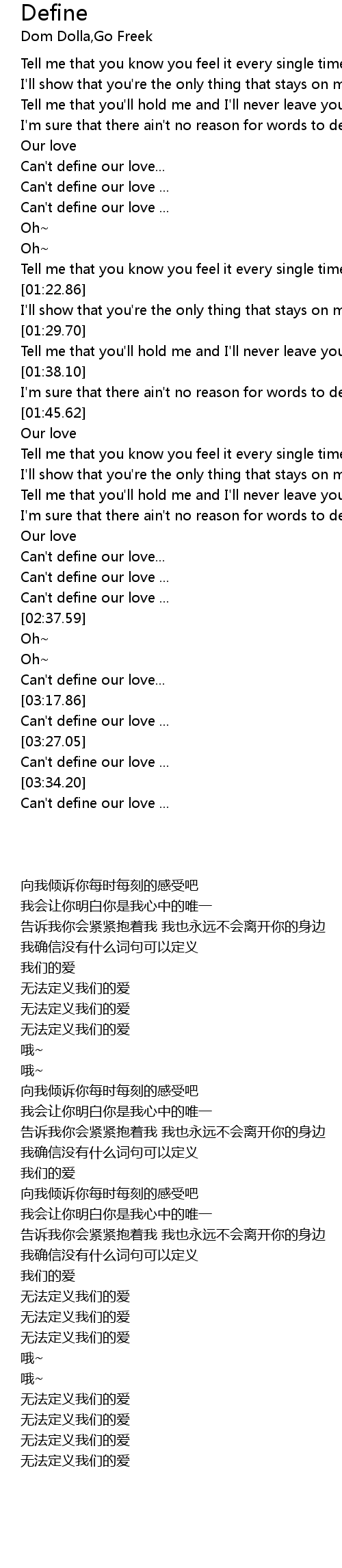 | [01:41.87] | I'm sure that there ain't no reason for words to define |