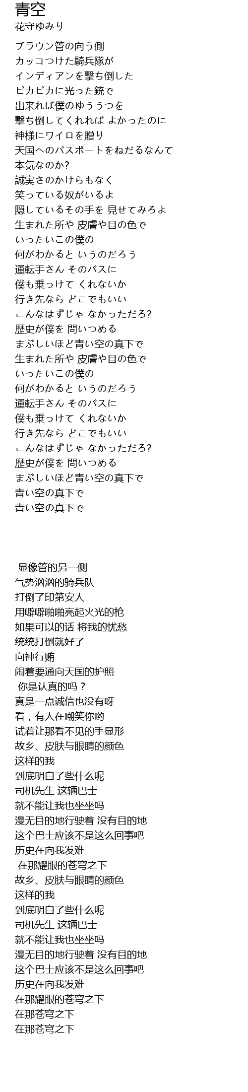 | [3:56.000] | まぶしいほど青い空の真下で |