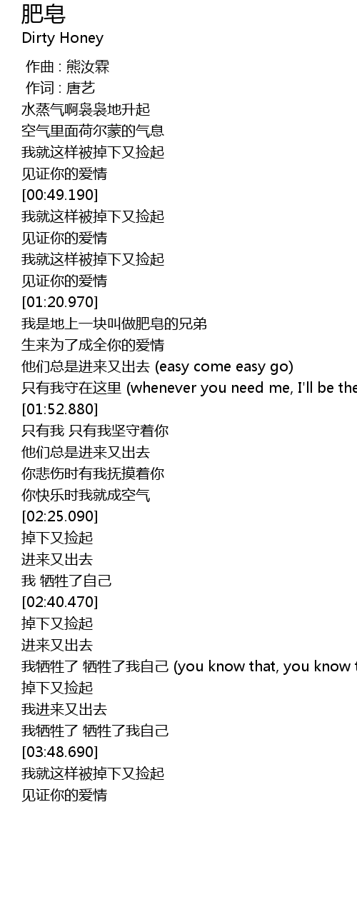 | [01:21.680] | 我是地上一块叫做肥皂的兄弟 |