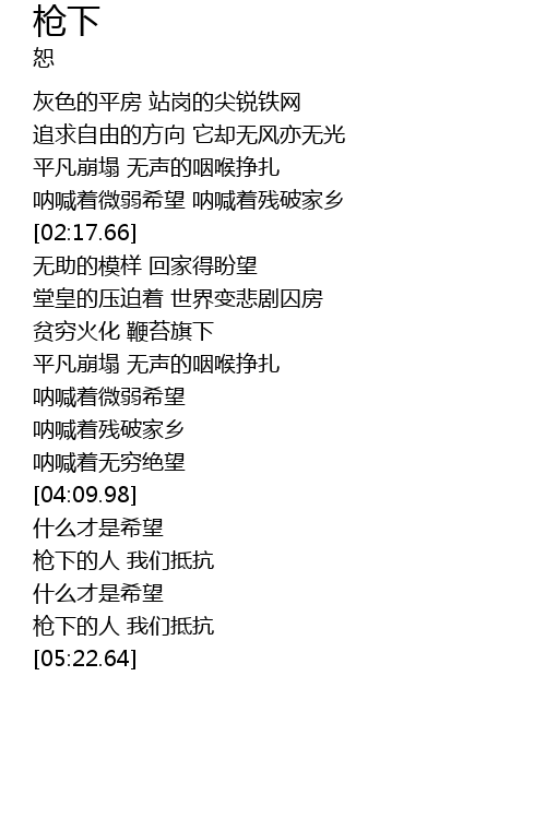 | [04:46.86] | 枪下的人 我们抵抗 |