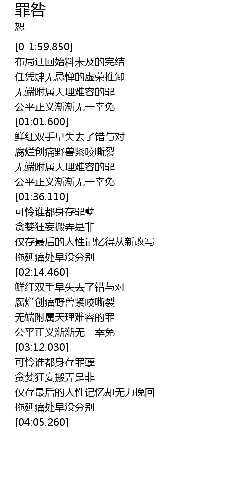 | [01:36.470] | 可怜谁都身存罪孽 |