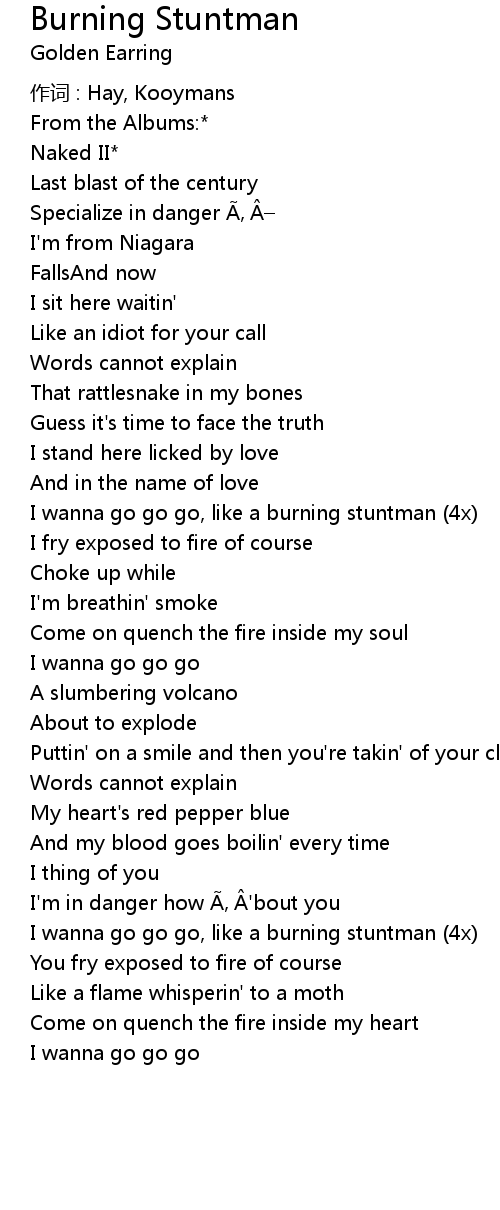 | I wanna go go go, like a burning stuntman (4x) | |