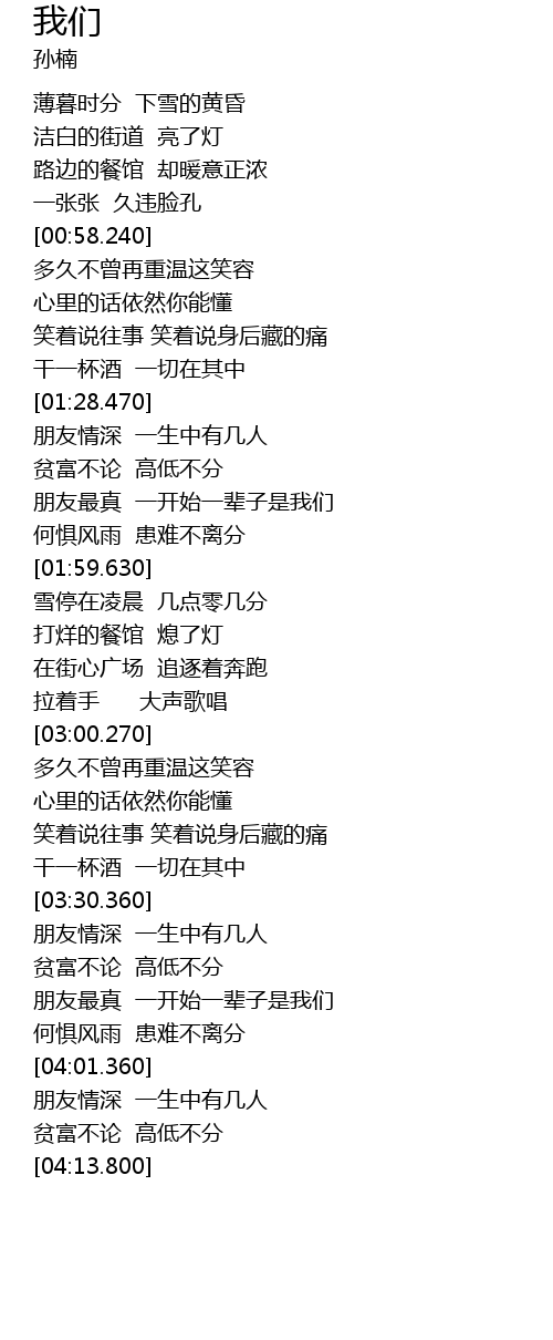 | [01:44.690] | 朋友最真 一开始一辈子是我们 |