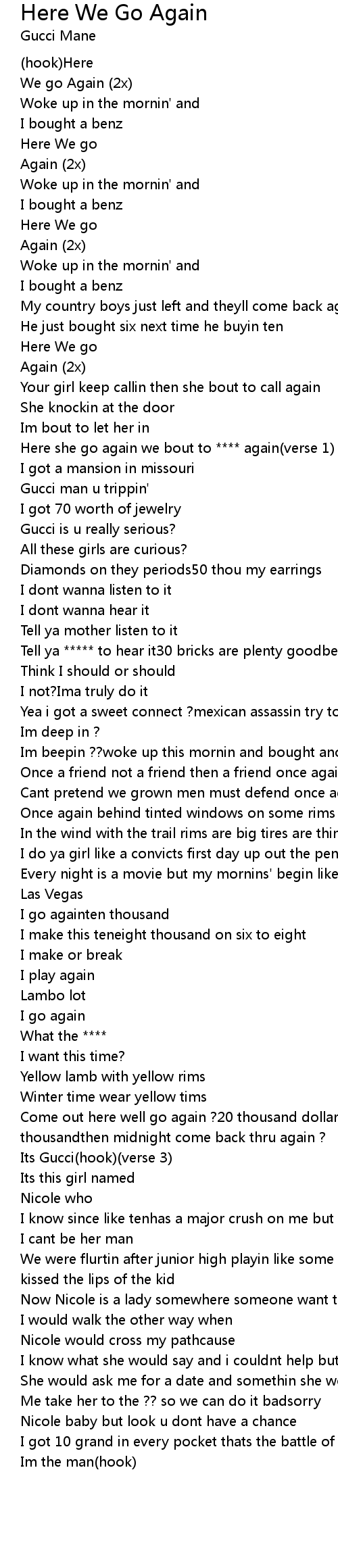 Here she go again we bout to **** again(verse 1) |